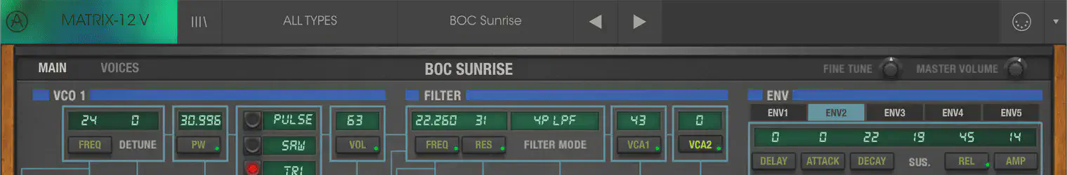 Matrix-12 V resurrects the first programmable analog synthesizer in software form, enhancing its revered combination of modular flexibility, analog richness, and 15-mode filter.