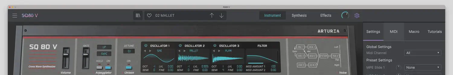 SQ80 V is Ensoniqs classic 80s crosswave synth reborn, weaving hybrid lo-fi character, complex industrial textures, and thousands of unique waveform combinations into a quick-fire softsynth.