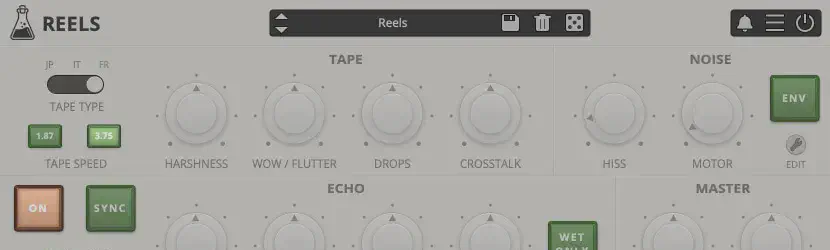 Reels is a tape emulation plugin with built-in echo section and tape start and tape stop effect.