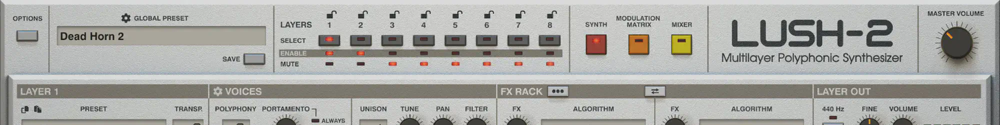 Lush 2 is a multi-layer polyphonic synthesizer.
