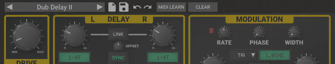 DUB-X creates unique delay effects with the included resonance filter and saturation stage.