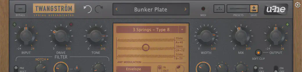 A flexible spring reverb box-of-tricks, modelled reverb tanks, paired with a drive section, filter stage, envelope, and mod matrix.